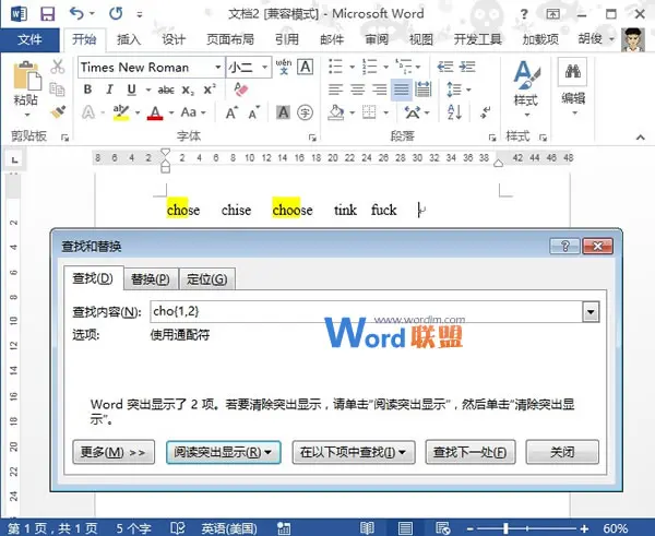 指定前一字符的个数:”{n}”可以用来指定要查找的字符中包含前一字符的个数,如:输入”cho{1} se”就是说包含1个前一字符”o”,可以找到”chose”,输入”cho{2}se”就是说包含2个前一字符”o”,可以找到, “choose”。