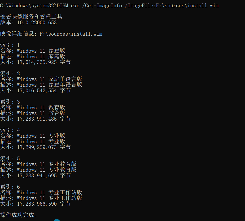 DISM.exe /Get-ImageInfo /ImageFile:G:\sources\install.wim