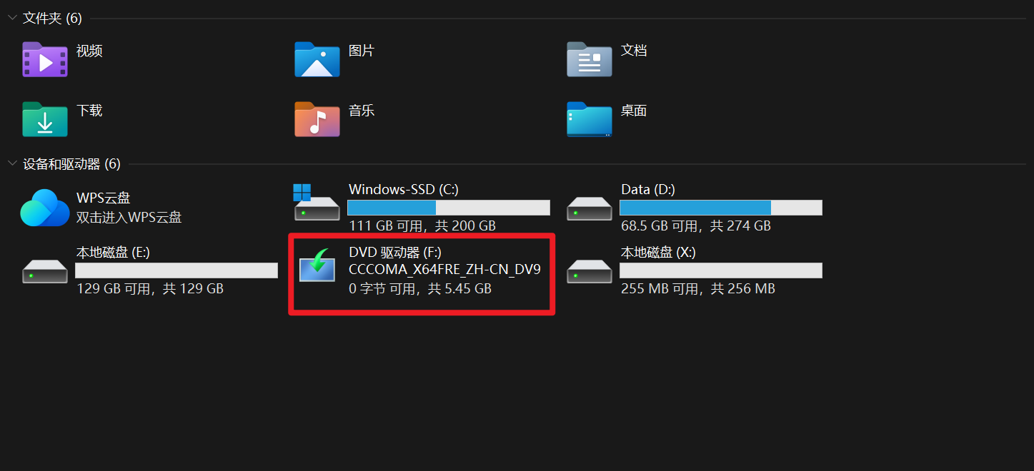 之后再此电脑里面就能看见一个DVD驱动器,记住这个驱动器的盘符,这里为G盘